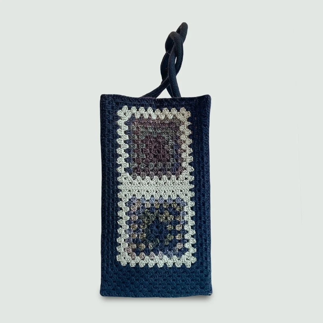 This handmade shopping bag is your ideal companion for the city or the beach. This model has a magnetic closure and an internal zip pouch. Charcoal combined with muted tones and black handles.
